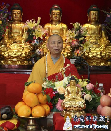是日上午九时,觉林法师率领大众举行了简短隆重的迎请仪式,在悦耳的梵乐声中,心继大和尚登法王座,作狮子吼,宣讲如来妙法。