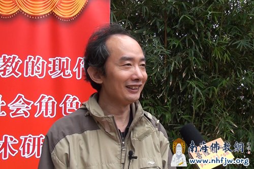 徐文明教授:大家知道在咱们国家也是长期以来也是儒释道三教为本,宗教对在历史上对我们传统文化的塑造,对我们到的的提升,曾经起过非常重要的积极的作用,在现代也一样,在现代我们这个中国有五大宗教,除此之外,还有民间宗教,多种宗教的存在,在这五大宗教里面,我所了解的主要是佛教,佛教我觉得在当代社会应该起到了积极的作用,从历史上来讲,佛教是一个非常具有现代性的宗教,佛教所提倡的平等、自由、民主、科学,这些意识跟我们现代社会所提倡的理念是完全吻合的,尤其在现在,在我们建设和谐社会这个过程中,佛教能够起到他的积极的作用,因为佛教本身是强调众生是,同体共生的,这个同体共生的理念也是讲生命之间是相互平等的,是和平共处的,所以这一点跟我们生态文明,跟我们美丽中国理念是非常符合的,所以我觉得在这个方面,我们要多发挥佛教的作用,因为佛教在我看来,他是非常先进的文化,他在道德上自律,是非常严格的,同时他讲慈悲利生,对他人,对众生的慈悲精神也是非常难得的,我们就需要把佛教非常美好的传统,这个理念,能够落实到现实上面,能跟我们的社会生活,跟我们每个人的生活结合在一起,这么一来,大家都要相互尊重,相互友爱,这个相互尊重和友爱不仅体现人和人之间,也要体现在生命之间,特别是对其他生命,对其他动物也好,植物也好,我们要尊重,要维护,这一方面是有助于这个生态建设,另一方面也有助于人类自身的生存和发展。